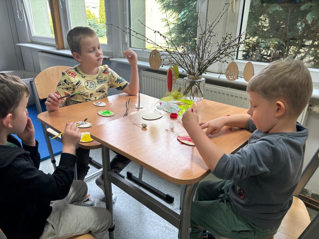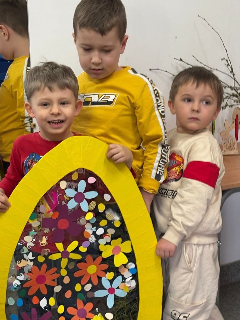 Kolorowo i radośnie minęły nam Wielkanocne Warsztaty, które zostały zorganizowane w ramach zajęć wczesnego wspomagania rozwoju. Dzieci wspólnie ozdabiały wielkanocne jajo, ćwicząc motorykę małą i precyzję.